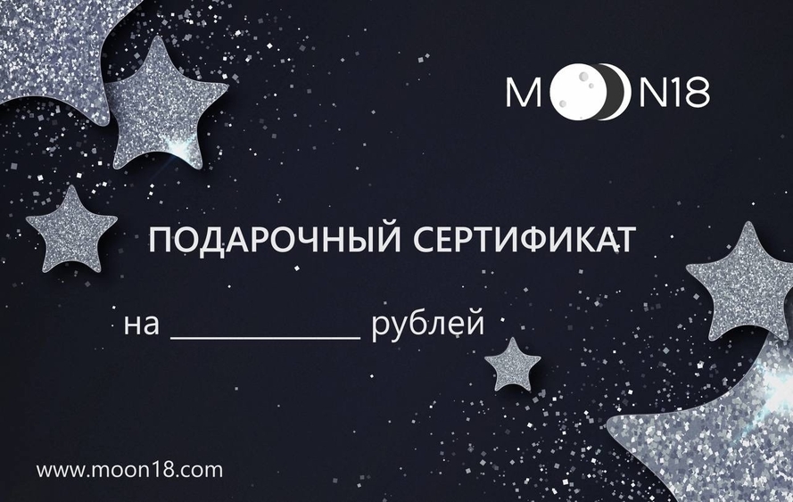 Сертификат действителен для покупки товаров на moon18.com и в офлайн магазинах.