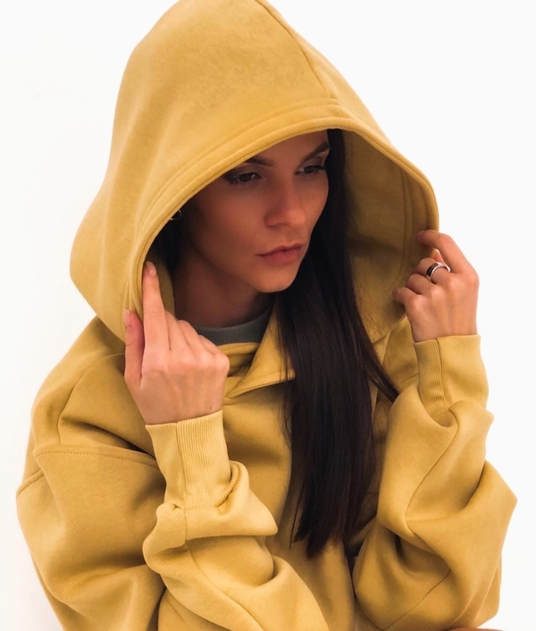 • Костюм из футера компакт пенье • Для него/для нее • Утепленный • Худи с карманом спереди, джоггеры на резинке • Свободный крой, спущенный плечевой шов • Логотипы из кожи и кожзамши